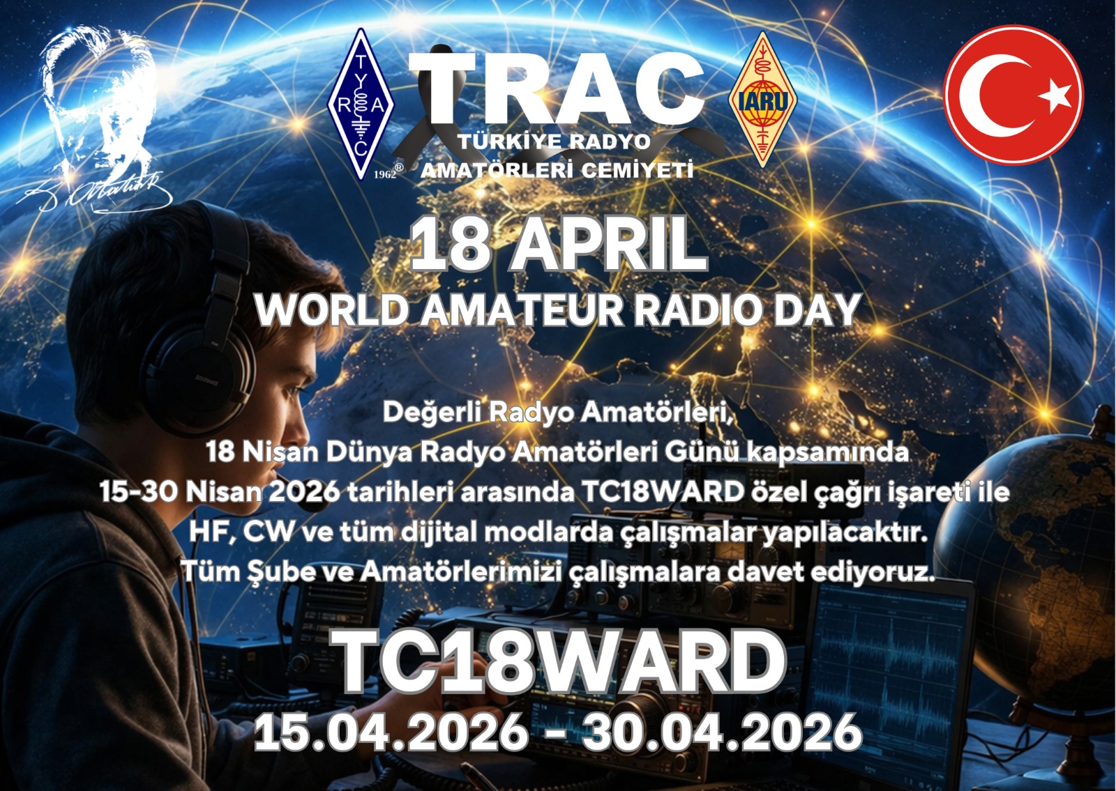 TRAC - Türkiye Radyo Amatörleri Cemiyeti Genel Merkezi, 18 Nisan Dünya Amatör Radyo Günü kapsamında özel bir etkinlik düzenlemektedir.